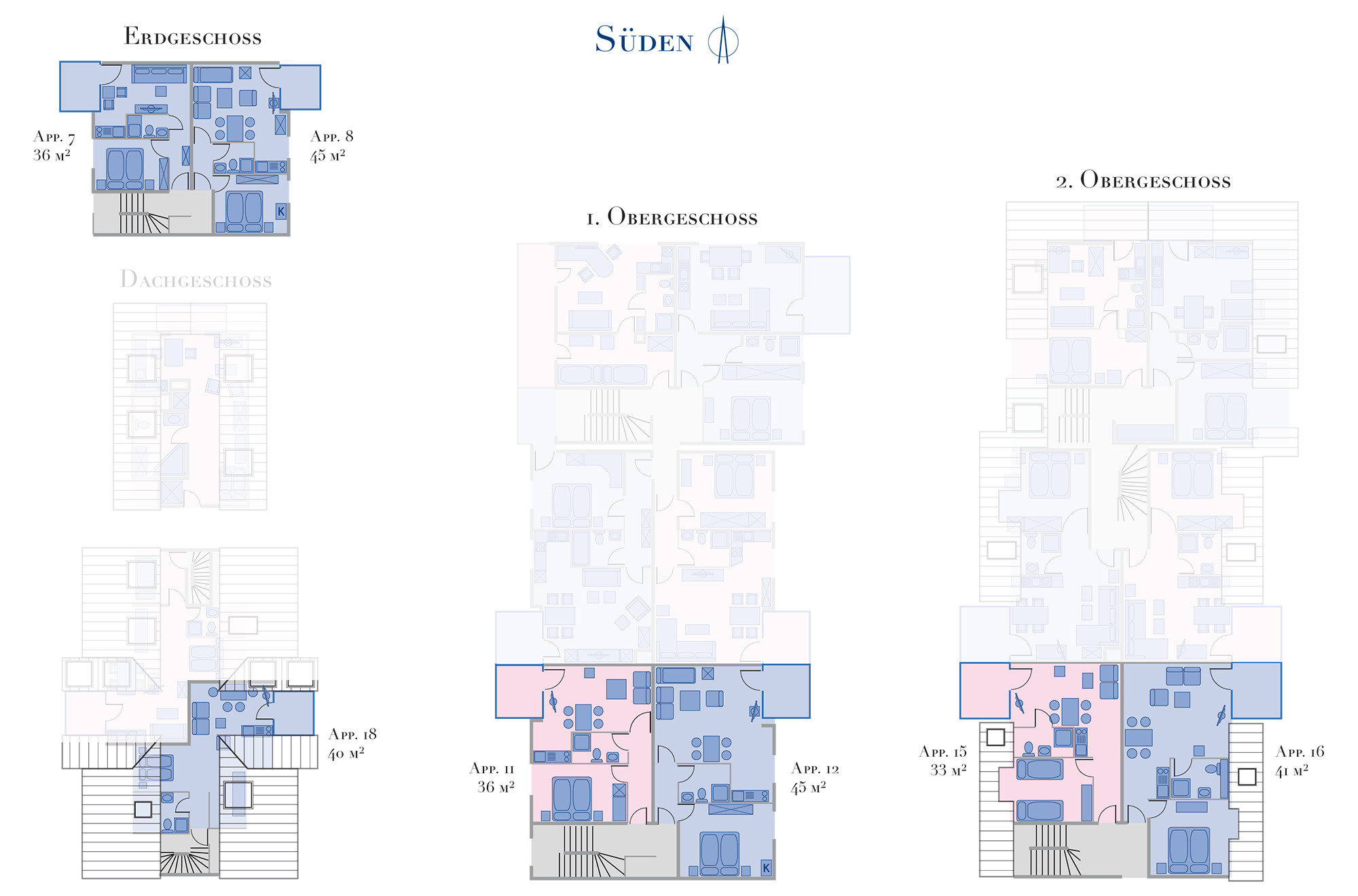 Unsere gemütlichen 3 Sterne Appartements bieten allen Komfort, um Ihnen einen entspannten Urlaub zu garantieren. Sie sind zwischen 33 qm und 45 qm groß. Für die Details klicken Sie bitte auf die Grundrisse.