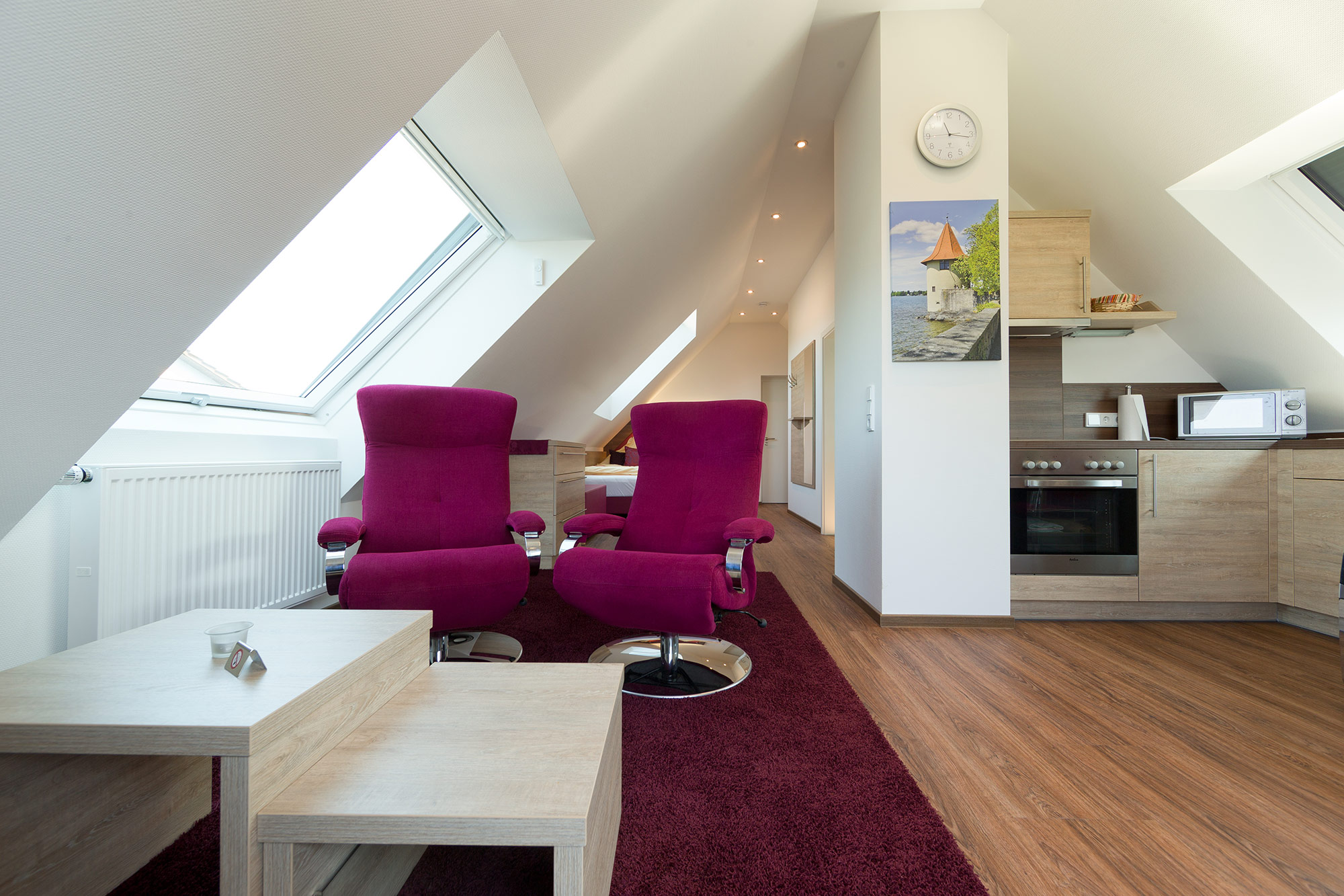 Die Honeymoon ist das romantische Sahnestück unseres Hauses. Durch die Lage in der 3. Etage haben Sie zu drei Seiten Seesicht, der Südbalkon kann praktisch zu jeder Tageszeit für ein Sonnenbad genutzt werden!Größe 45 qm / Etage 3.OG / Ausrichtung Süden