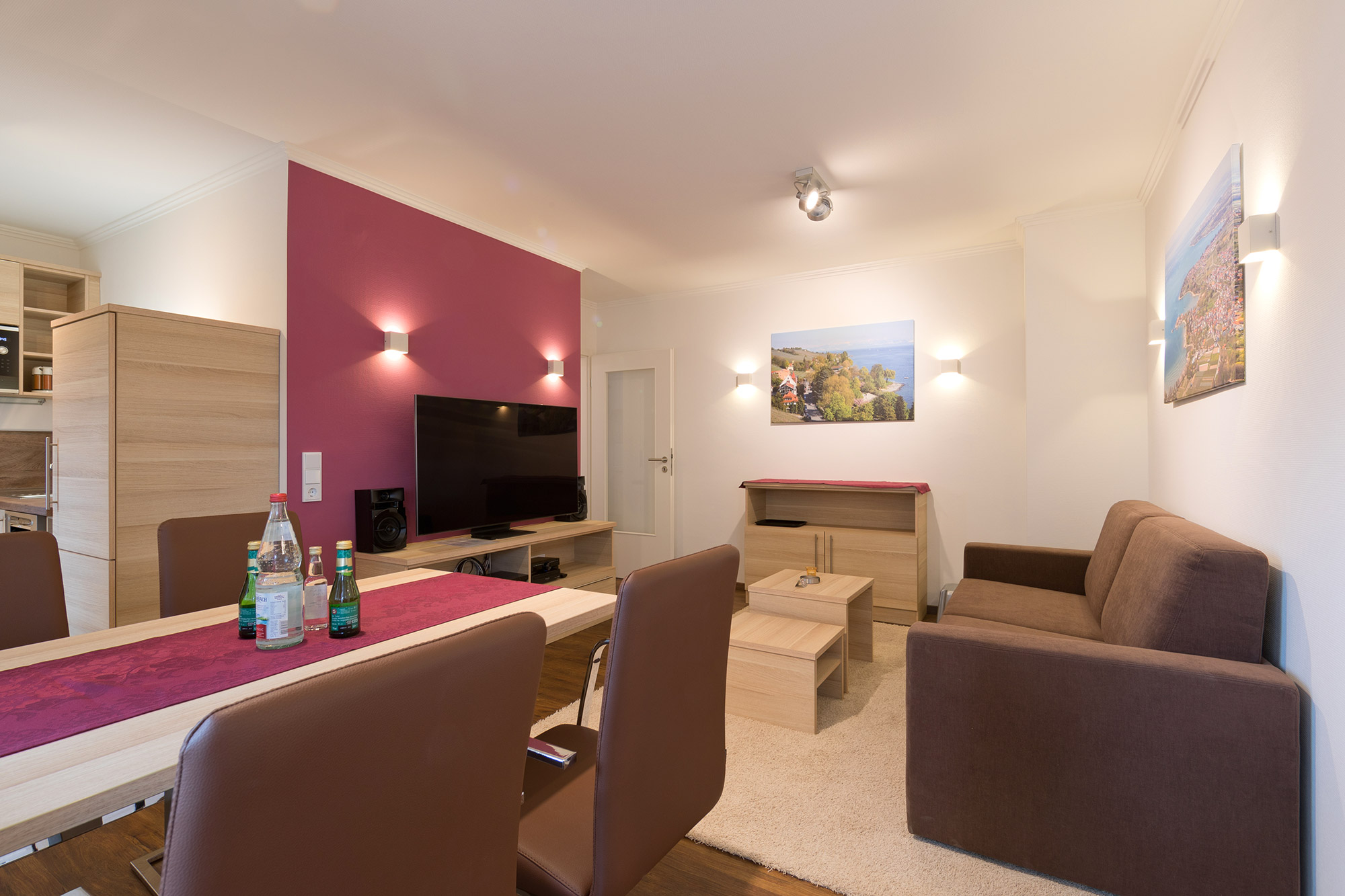 Die gemütliche und leicht zugängliche Erdgeschosswohnung „Nonnenhorn“ hat ein extra großes Boxspringbett (2 m x 2 m) und ein modernes Bad mit geräumiger Dusche und Sitzbank. Der großzügige Balkon mit traumhafter Sicht auf das Schloss Montfort lädt zu einem Frühstück in der Morgensonne ein.Größe 45 qm / Etage EG / Ausrichtung Osten