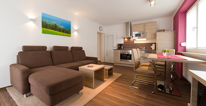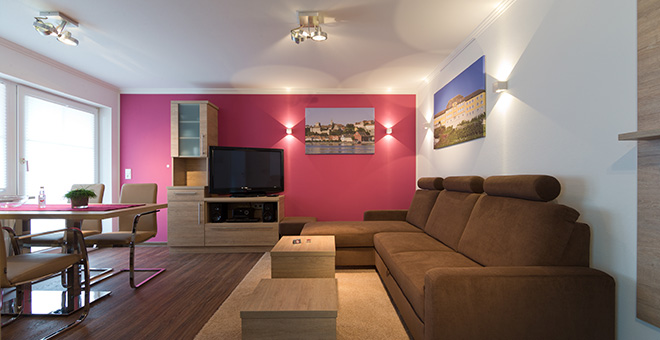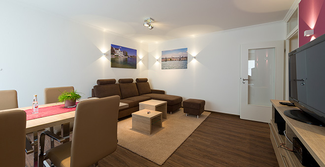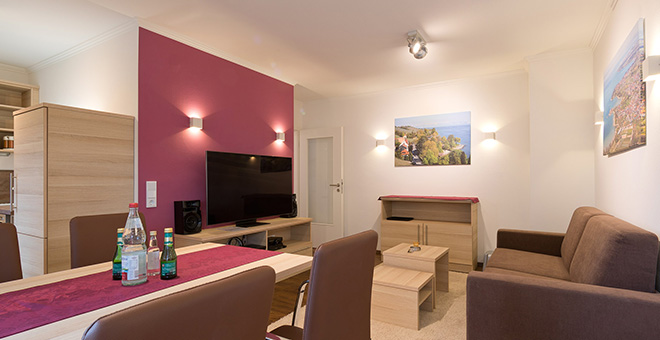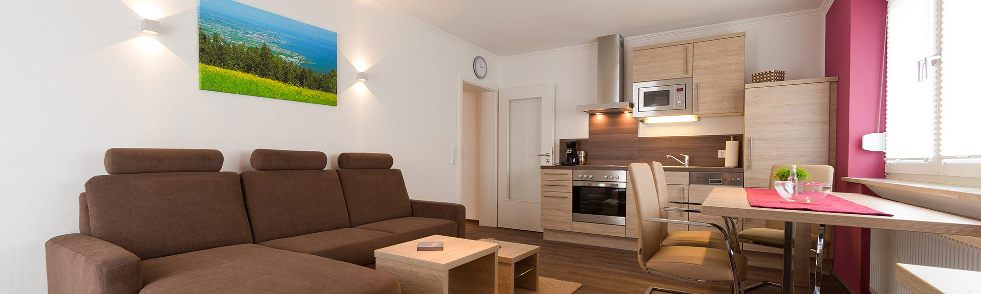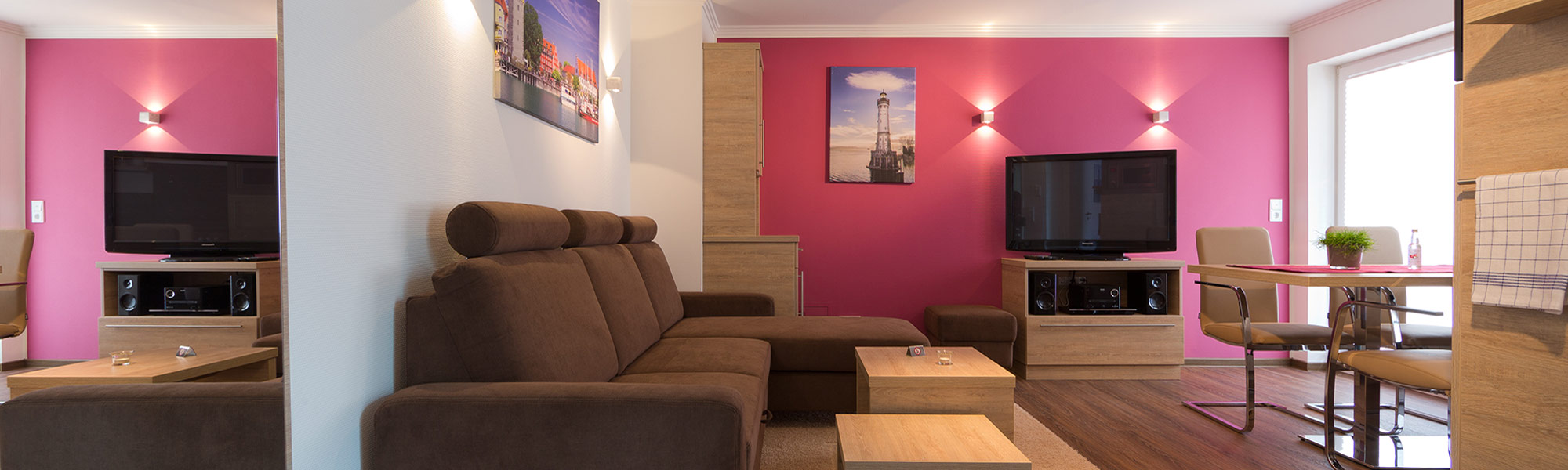 Unsere Ferienappartements erreichen Sie über zwei getrennte Treppenhäuser. Über das vordere Treppenhaus am Haupteingang erreichen Sie unsere elf exklusiven 5 Sterne Luxusappartements mit herrlichem Seeblick.• stilvoll ausgestattete Appartements
